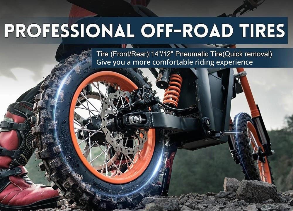 - Neumáticos delanteros de 14 pulgadas y traseros de 12 pulgadas : perfectos para abordar todo tipo de terreno con estabilidad.